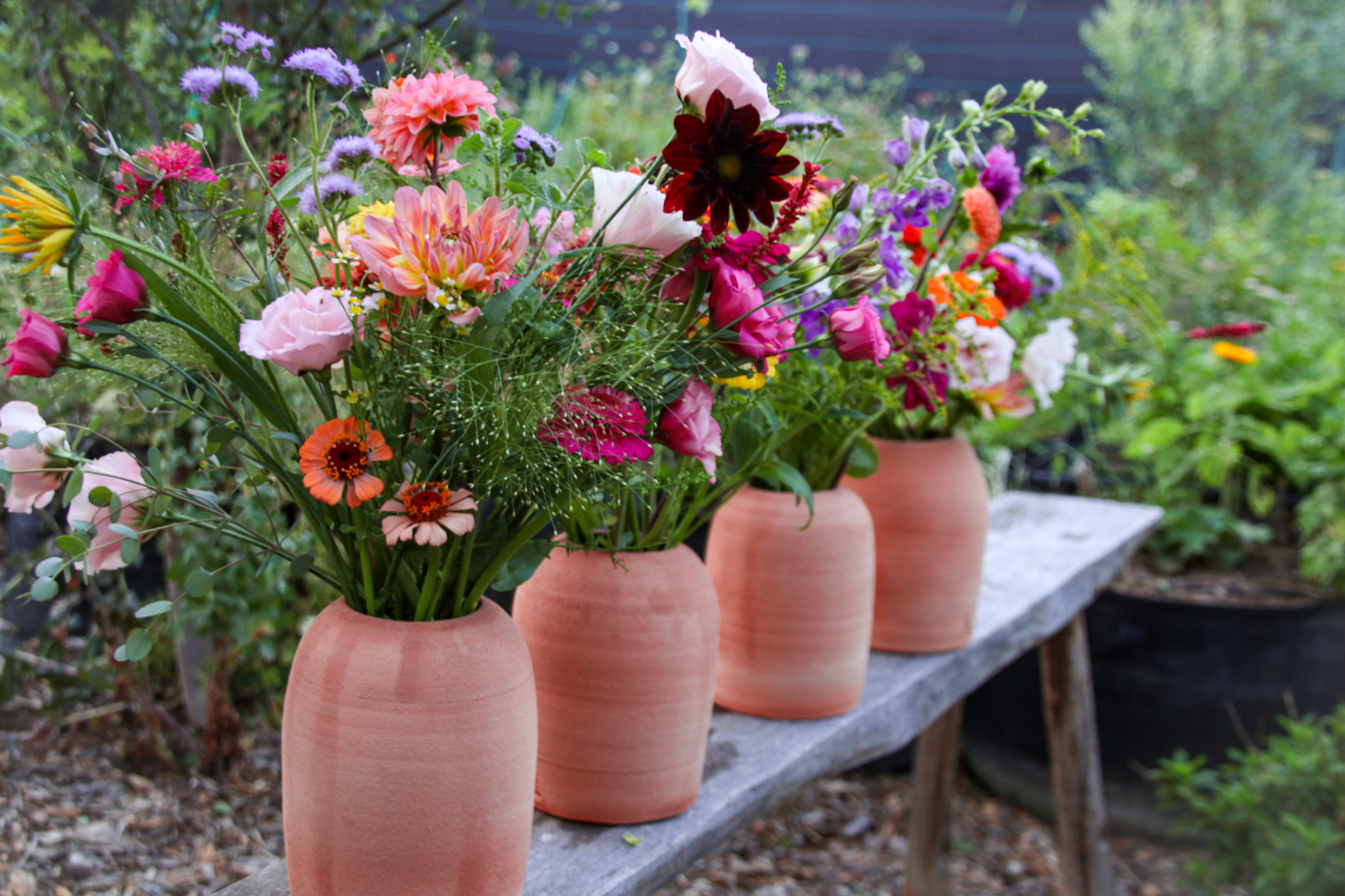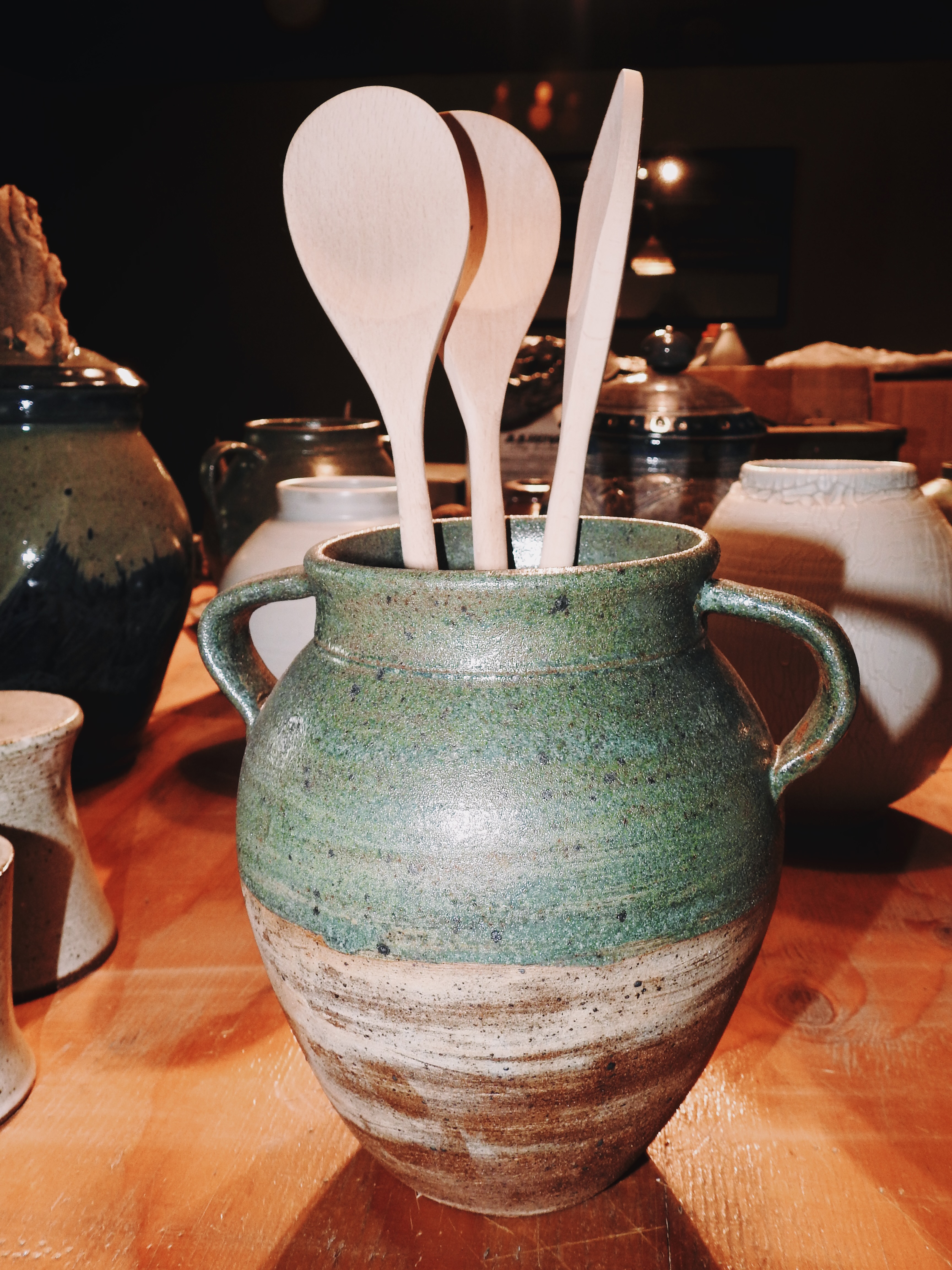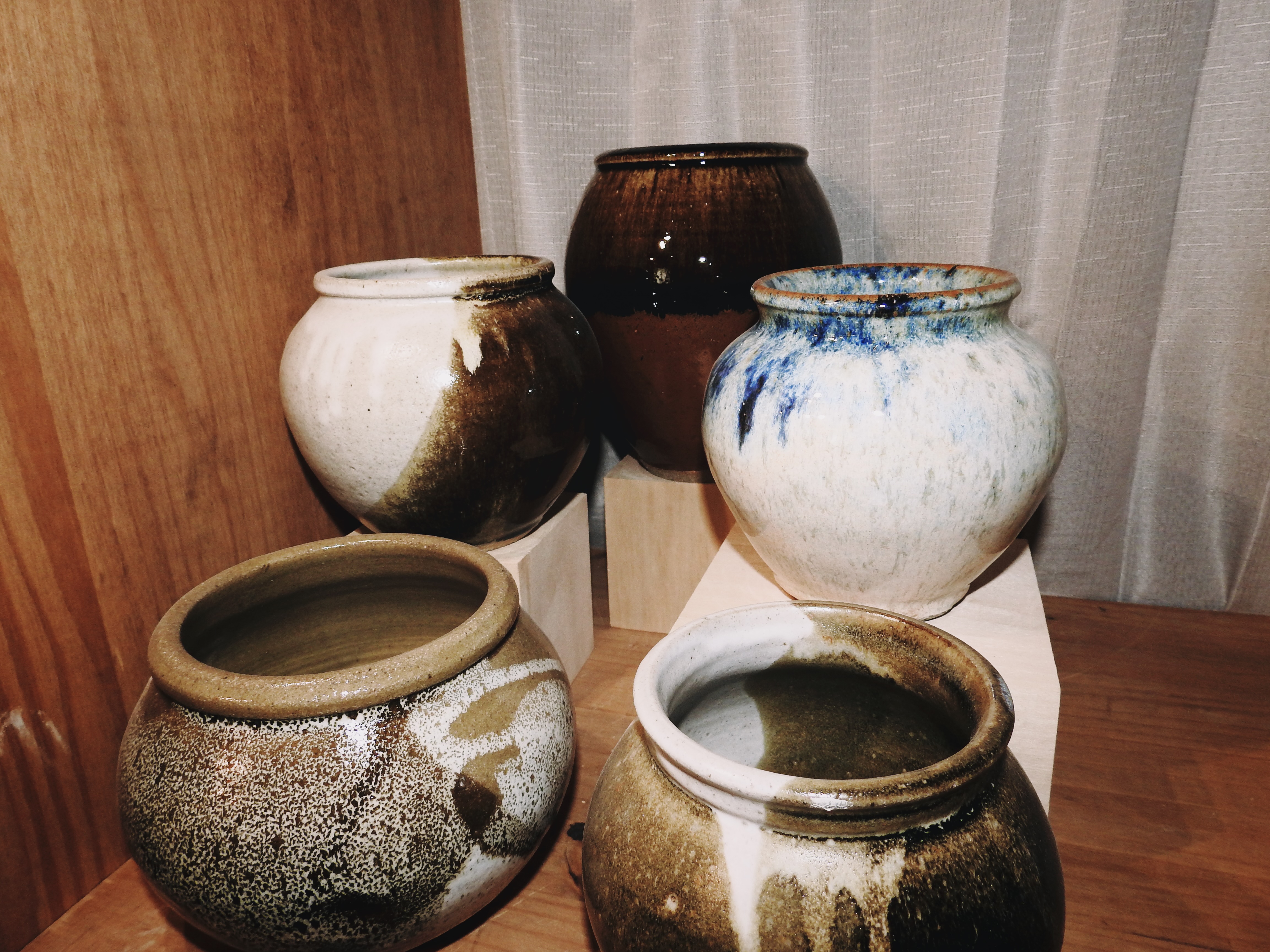 Constantly changing inventory of handmade ceramic pieces.
